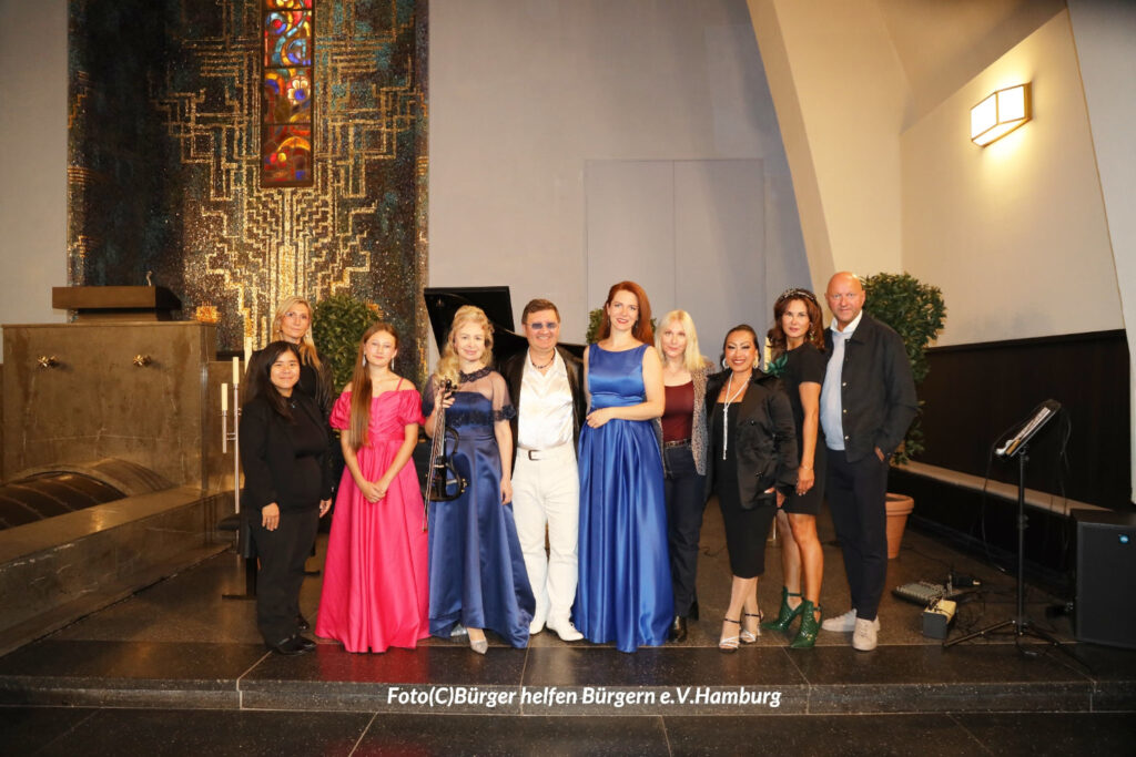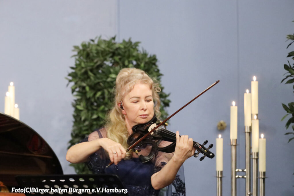 Das Konzert war geprägt von den außergewöhnlichen Darbietungen des Pianisten und Komponisten Boris Kosak sowie der Sopranistin Julia Appel und der Violinistin Svetlana Font Marti. Zu einem besonderen, emotionalen Moment des Abends wurde der Auftritt der 12jährigen Hamburger Sängerin und Geigerin Jolanda Charlotte Schwertfeger, die im Rahmen unserer „Kulturpatenschaften“ Gesangsunterricht bei unserer Mentorin Stella Motina erhält.